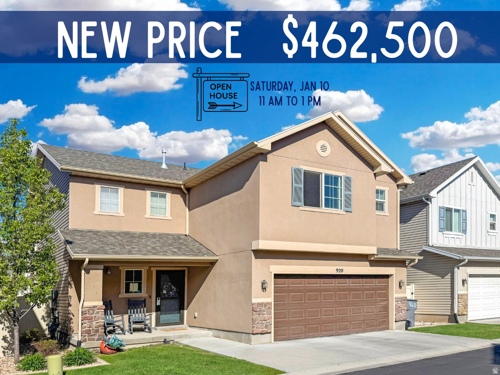 This beautifully refreshed home blends modern comfort with thoughtful design. Soaring ceilings and large windows fill the open great room with light, creating an inviting space for everyday living and entertaining. The gourmet kitchen impresses with crisp white cabinetry, granite countertops, stainless steel appliances, and a walk-in pantry-plus, the refrigerator stays! Upstairs, all bedrooms are conveniently located together, including a spacious primary suite with a soaking tub, separate shower, and walk-in closet. Fresh new carpet throughout adds a finishing touch of luxury. Enjoy outdoor living on the oversized patio with a pergola or relax in the fully fenced backyard. The community offers resort-style amenities including two pools, a clubhouse with fitness room and hot tub, multiple parks, and maintained front lawns. Perfectly situated near I-15, I-215, and Legacy Parkway, you'll love the easy access to shopping, trails, and recreation. This home truly has it all-style, comfort, and location!