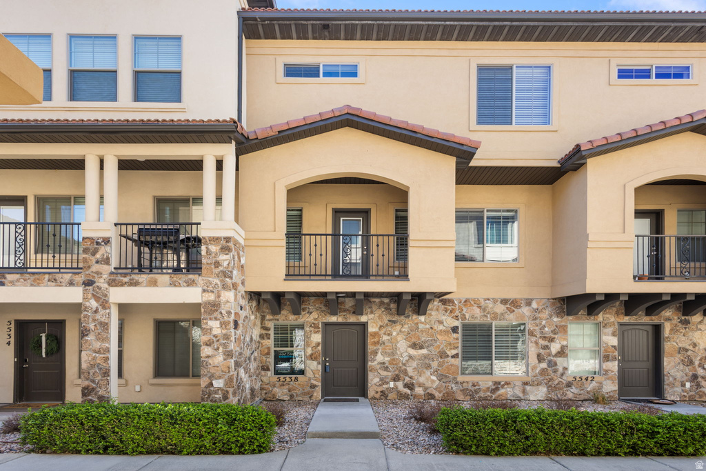 Welcome to this beautifully upgraded 3-bedroom, 2.5-bathroom townhome located in one of Highland's most desirable gated communities. Featuring brand new carpet throughout, this home offers an open, light-filled floor plan designed for both comfort and style. The main level showcases a spacious great room with wood beam accents, a statement brick wall, 9-foot ceilings, and recessed lighting. The modern kitchen is equipped with quartz countertops, stainless steel appliances, and ample cabinet and pantry space. Step out onto the private balcony, perfect for relaxing or grilling. Upstairs, the primary suite offers a true retreat with vaulted ceilings, an oversized vanity, and a large walk-in closet. The lower level provides a versatile office or flex space to fit your needs. Enjoy exceptional community amenities including a heated pool and spa, hot tub, fitness center, theater room, clubhouse with full kitchen, outdoor gazebo with grill, and more. Located just minutes from American Fork Canyon with easy access to hiking and outdoor recreation, and within walking distance to parks, trails, splash pad, and shopping. Low-maintenance living in an unbeatable location. Square footage figures are provided as a courtesy estimate only and were obtained from county records. Buyer is advised to obtain an independent measurement.