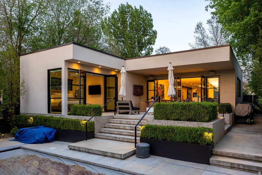 Some homes simply pass by in your periphery. Others make you linger. This one always felt like the girl in the cafe -- the effortlessly chic one you notice every time, seated by the window, entirely at ease in her own world. Polished, but never trying too hard. A little whimsical, with just the right amount of *fancy*, and completely self-assured. As it turns out, the owners are just as casually cool as their abode. They hired a great architect and landscape designer, and they had a vision. The home has been fully reimagined by Imbue Design, with a sensibility that feels both curated and entirely natural. Behind the front gate, the home feels a world away. In front, the garden is manicured and well-behaved, supplying privacy that gently separates the home from the street. Around back, French doors open from the kitchen and primary suite, ushering you out to an intimate terrace just made for meeting and mingling around the fire. A perfectly scaled pool and spa sit between the main house and a detached garage with guest quarters, forming a composition that feels almost European in its restraint and symmetry. Repeating grid patterns -- across windows, doors, and fencing -- bring a subtle rhythm to the architecture, lending a sense of order and elegance. Inside, the details reveal themselves in stages; layered textures, tailored finishes, and dramatic moments. Sparks of wallpaper nod to high fashion within spaces that feel both composed and deeply livable. The primary suite comes outfitted with a full wall of built-ins alongside a lavish walk-in closet. The open living room and kitchen with delicious views from every angle, form the center of the home, while a dedicated office frames the front garden through a wall of glass and greenery. Lately, I've been captivated by The Parisian Agency, and this home carries that same unmistakable allure. You cross that threshold, and suddenly you're transported to a cinematic world of design and visual intrigue. Perhaps it's the balance of reserve and personality. Or perhaps it's simply that rare quality of being so beautiful and entirely at ease. Either way, she stays with you.